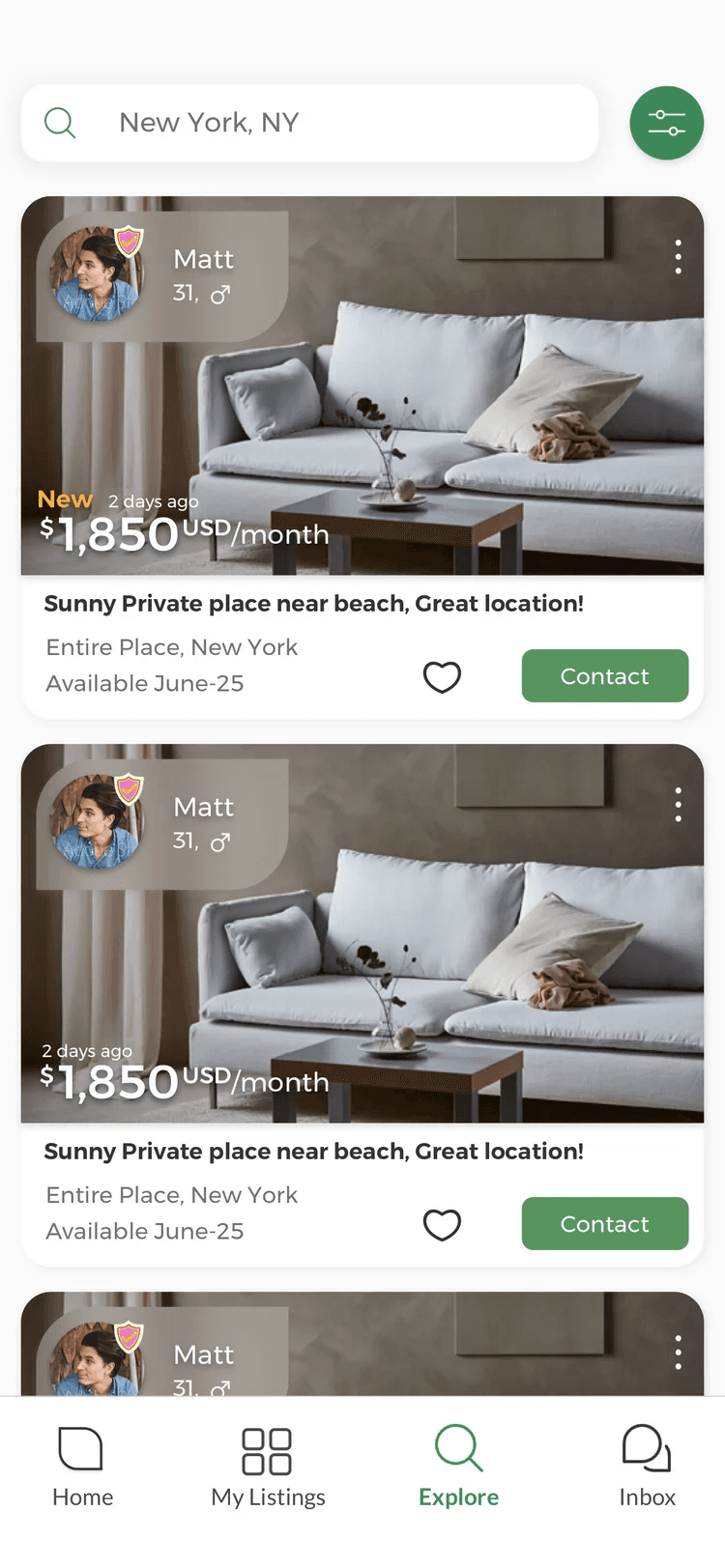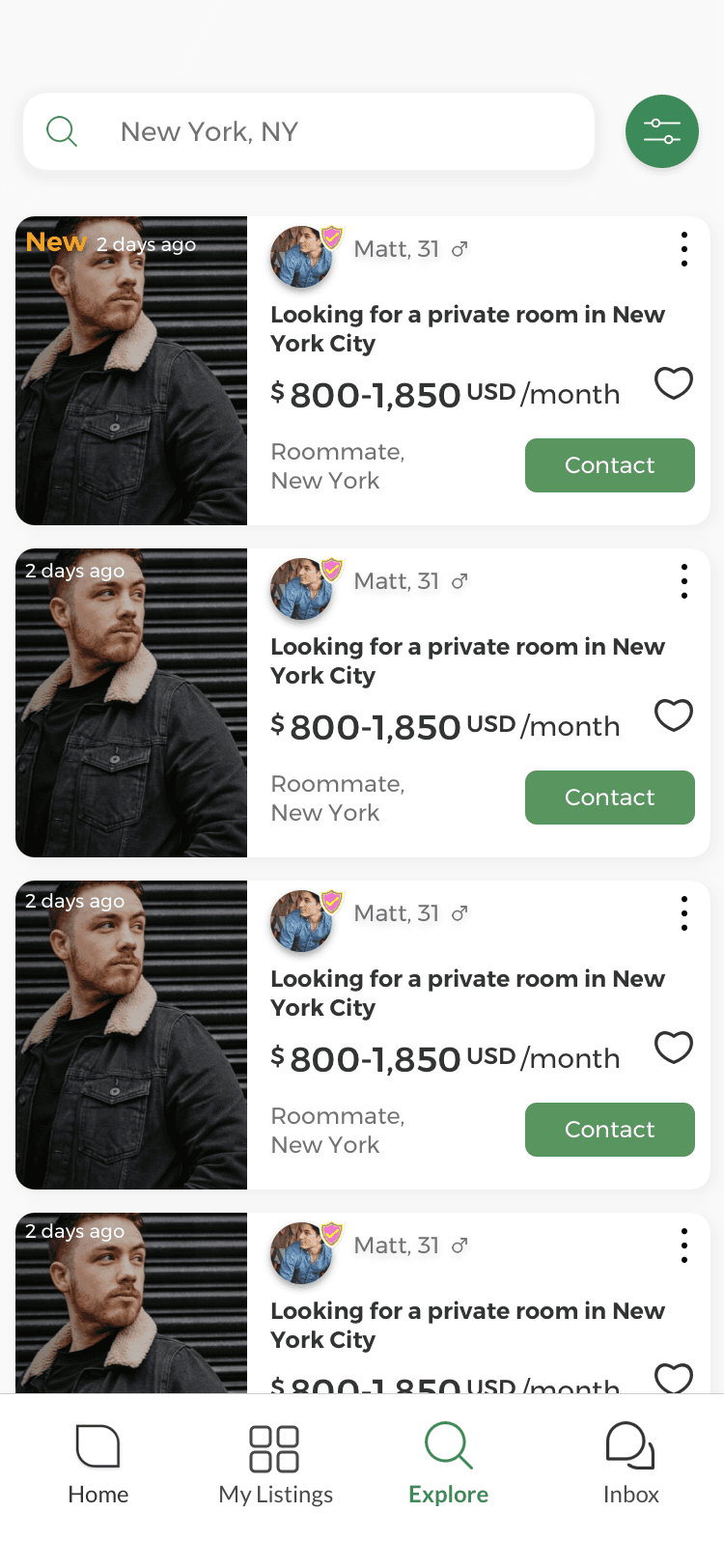 โOnce at the wireframing stage with collected data gathered during user research analyzes, we started to wireframe the app version of Roomster 2.0. As 70% of users were using Roomster in an app form, we started with designing the application first.