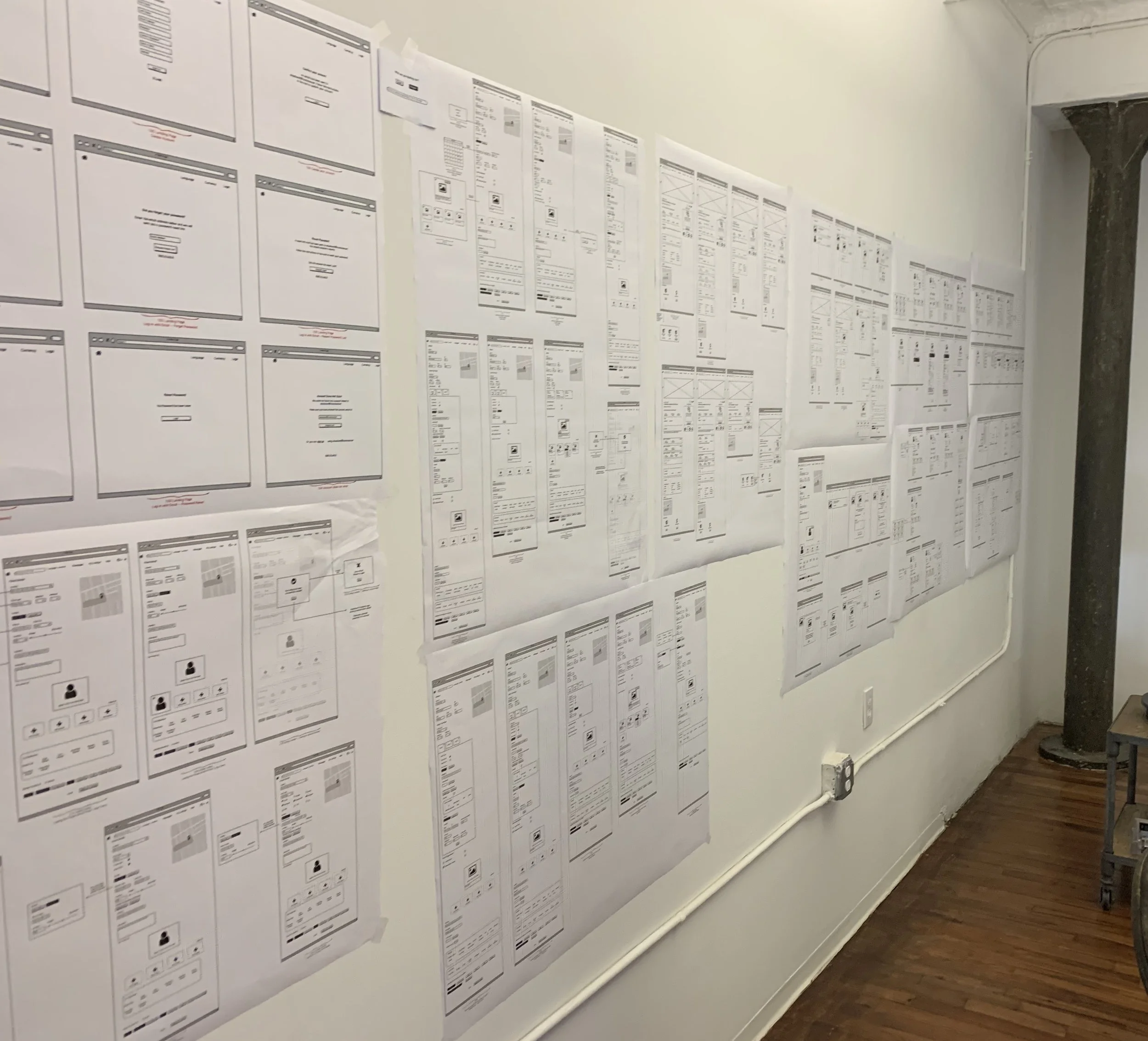 First iteration of the wireframes was printed and arranged, so everyone from development, C level management to marketing can go through the flow and leave their feedback and comments. This resulted in a lot of detailed discussions that helped us to facilitate internal conversations within the company as a whole and point out anything that we considered adding or removing from the flow.